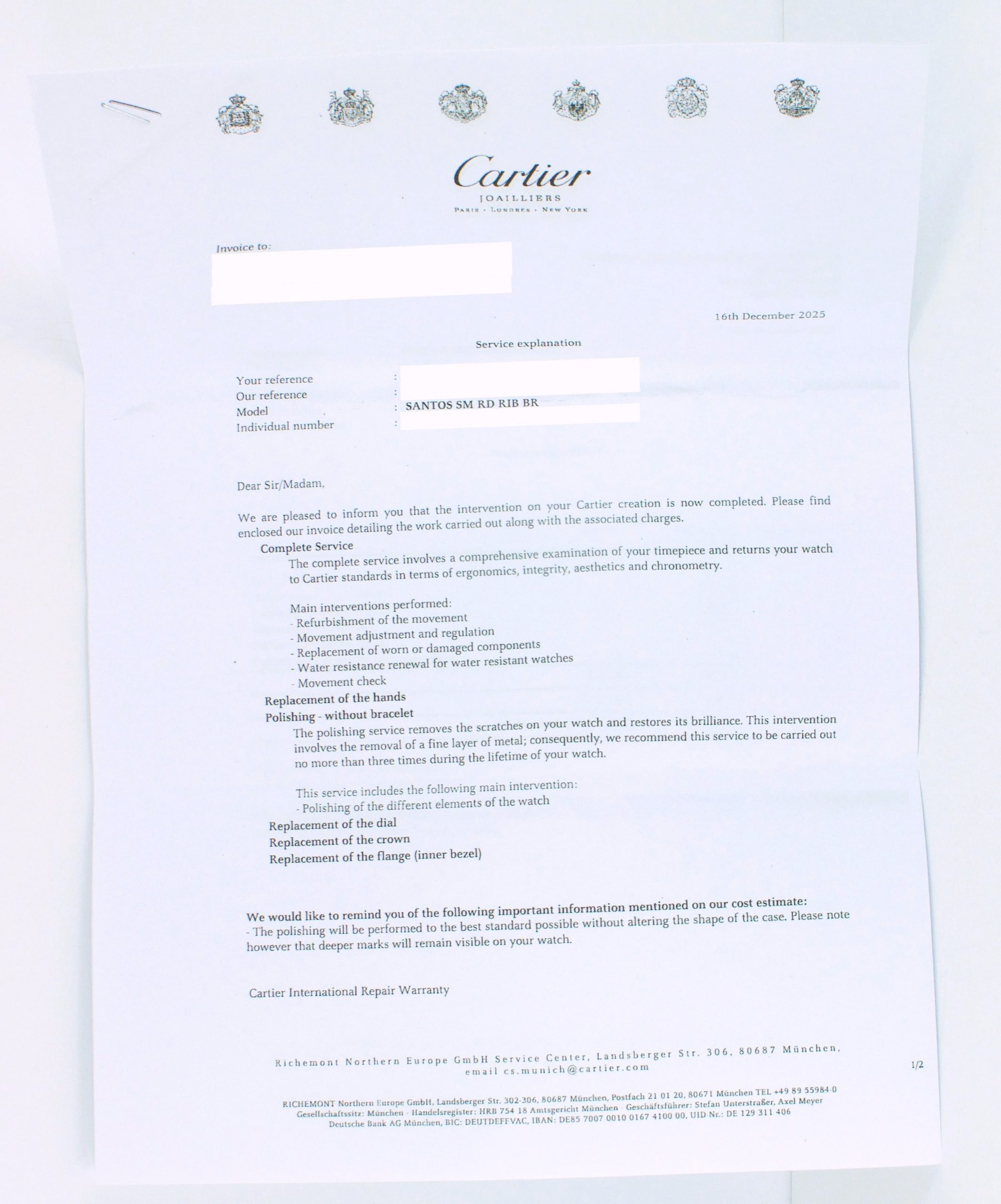 Service Papieren Cartier 12-2025